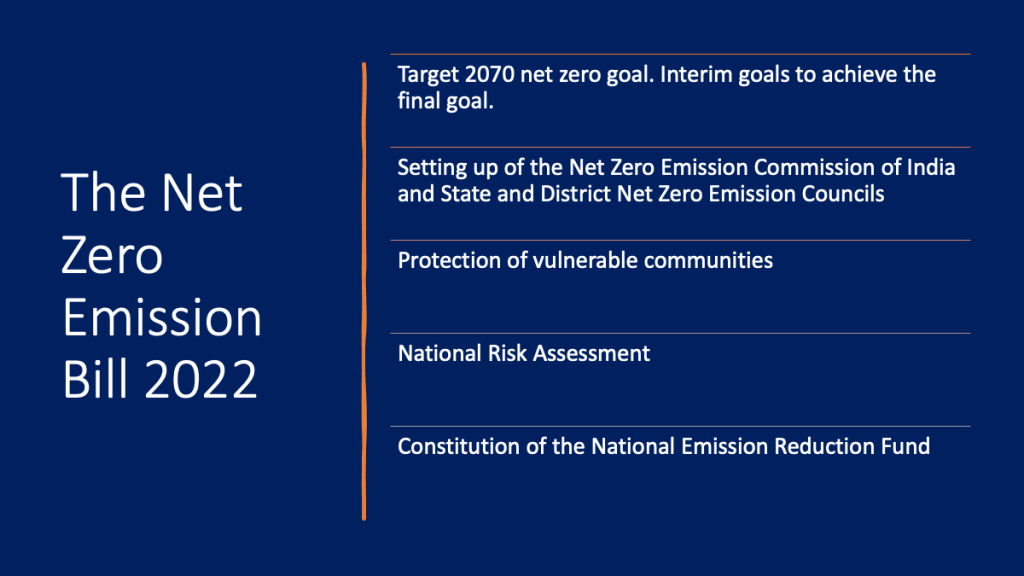 The Net Zero Emissions Bill 2022 was introduced in Rajya Sabha on December 9, 2022. It hasn’t received the attention that it deserves. The Bill creates a structure that will enable India to achieve the net zero target set out at the Glasgow Summit and incorporated in India’s NDCs (Nationally Determined Contributions). To achieve the 2070 target, Interim emission targets are set out: