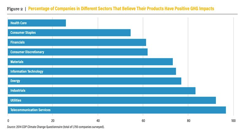 Thus, companies like Tesla are ranked low on emissions even though they help reduce emissions by enabling people to shift from petrol. Other examples of avoided emissions include such products and services include low-temperature detergents, fuel-saving tires, energy-efficient ball-bearings, teleconferencing services, manufacturing a catalyst to improve production efficiency, providing services enabling energy savings, selling digital technologies that reduce the need for business travel, and using clean-burning fuel and avoiding idling to cut carbon emissions.